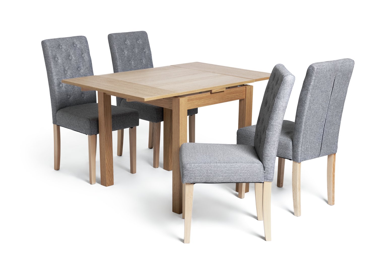 Cayenne oak extending dining table and 4 oak painted dining chairs. Shop this collection (152) unfinished wood mission dining chair (set of 2) by international concepts (74) new grange gray spindle back dining chair set of 2 chairs included. Natural wood will give a warm. Classic rectangular tables with matching upholstered chairs are often a favoured style. This folding dining table and chair set is ideal for smaller kitchens or dining room spaces.